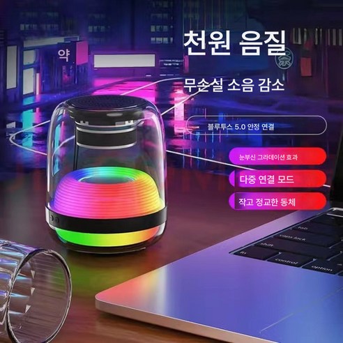 글라스플러스4 블루투스 스피커 칠색조 발광 무선 미니 스피커 서브우퍼