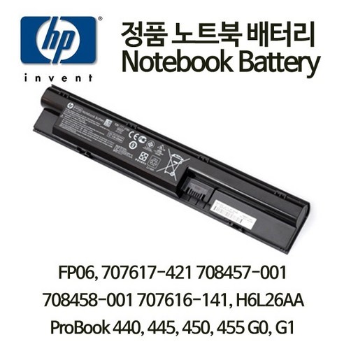 HP 노트북 배터리 FP06 708457-001 708458-00을 사용할 때, 몇 가지 사용법과 주의사항을 알아두시면 좋습니다. 배터리를 제품에 장착하기 전에 전원을 꺼놓고, 충전을 완료한 후에 사용하시기 바랍니다. 또한 배터리를 오래 사용하지 않을 경우에는 저장 시에도 규정된 안전한 방법으로 보관하시기 바랍니다.