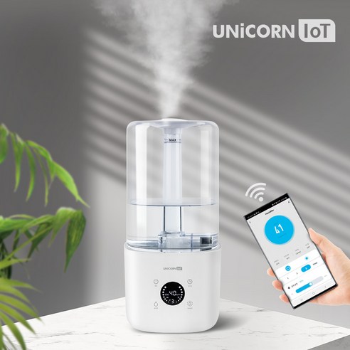 유니콘 대용량 스마트가습기는 어플과 리모컨으로 연동하여 편리하게 사용할 수 있는 가습기입니다. 온습도를 측정해주는 기능을 탑재하여 사용자의 편의를 높였습니다. 똑똑한 가습기로서 LED 무드등을 사용할 수 있어 공간에 분위기를 조성해줍니다. 또한, 간편한 세척이 가능하여 청결함을 유지할 수 있습니다.